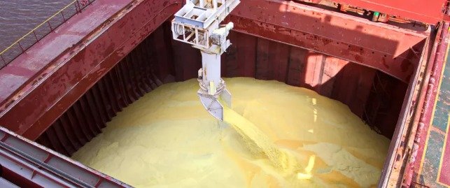 - It is loaded using conveyor belts, grain elevators, or pneumatic systems into ship holds.